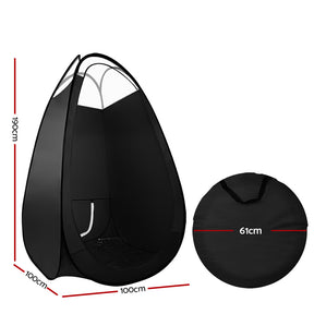 The self-erected Spray Tan Tent implies simply unzipping the carry case, stepping back, and the tent will pop up. Despite its simple structure, it is stable when standing and is made of fully washable materials making cleaning a snap. The tent can be tucked away easily, making it easy to move from room to room effortlessly.