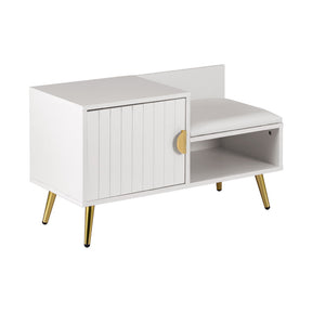 Transform your entryway with the chic Artiss shoe bench. This clever piece combines a cozy padded seat, handy open shelf, and sleek shoe compartment in one compact design. The faux leather cushion and gold feet add a touch of elegance to your space.