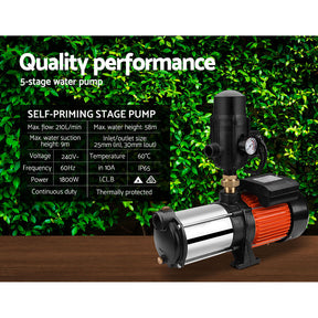 Giantz Garden Water Pump High Pressure 1800W 5-Stage Tank Irrigation Black