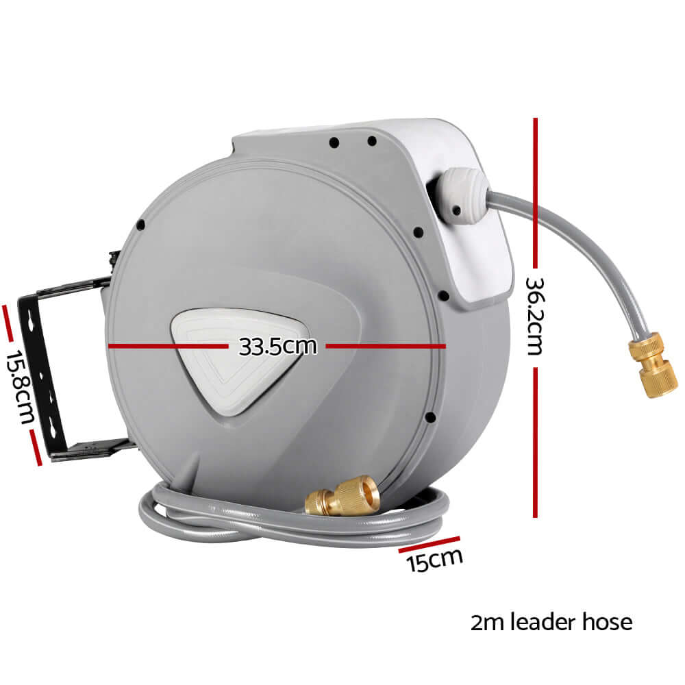 Water Hose Reel 20M Retractable Auto Rewind Garden Brass Spray Gun